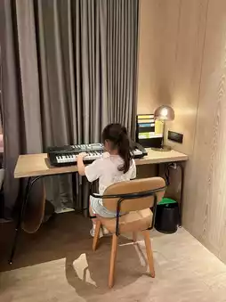 YoYo was also happily practicing piano in the room,