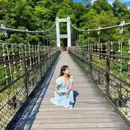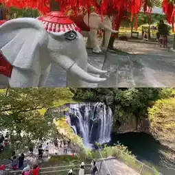 🚘 After our detour to Chongwen Village, we drove for about 50 minutes to reach Shifen Waterfall. 🌁 From the entrance, we crossed a bridge and took a few minutes walk through the lush greenery to the waterfall.