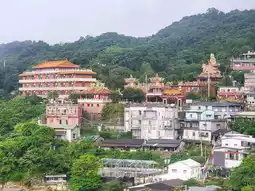 Quanji Hall is the main religious center in Jinguashi area. The statue enshrined in the temple is the only golden-faced Guan Gong in Taiwan before the restoration of Taiwan. The bronze statue of Guan Gong on the top of the temple is reading a book of the Spring and Autumn Annals, towering above the Quanji Hall and is also the landmark of Jinguashi.