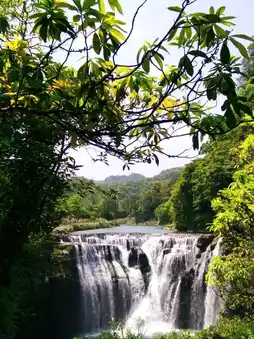 Located in Pingxi District, New Taipei City, the waterfall stands 20 meters tall and 40 meters wide, being the broadest waterfall in Taiwan.