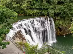 From the parking lot, it takes about 5 minutes to cross the suspension bridge to reach the waterfall. Shifen Waterfall is often referred to as a mini Niagara Falls! It operates only from 9:30 AM to 5:30 PM, so make sure to plan your visit accordingly. On the way, there’s a street stall known for its delicious sausages—don’t miss out!