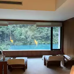 The moment you step into the lobby, you're greeted by the rich cultural elements of the Atayal tribe✨. The wooden decor paired with unique handcrafted art pieces exudes sophistication while maintaining a cozy vibe! The rooms are even more amazing—private hot spring baths overlooking the valley's stunning scenery. Soaking in the warm sodium bicarbonate spring water washes away all your worries! Afterward, your skin feels as soft as a baby's, making you never want to leave🛀.