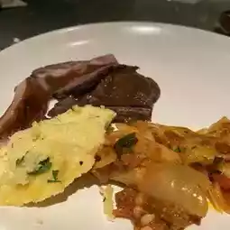 The banana pancake contains melted marshmallows and chocolate. It is super delicious.