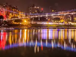 • Beauty Day and Night: During the day, you can enjoy the lake and mountain views as well as the riverside trails from the bridge. At night, LED lights paired with a light and water show reflect on the lake, creating a fairyland-like scene.