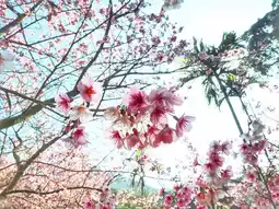 It's super exciting when the tricolor cherry blossoms are in full bloom. There is a suitable bus to take at the bus station as soon as you get out of Tamsui MRT. It takes about half an hour to get there. During the cherry blossom viewing event, there will be some food stalls in front of Tianyuan Palace. After passing Tianyuan Palace, there is a large area of cherry blossom trees behind it! The cherry trees are well maintained and visitors are not allowed to get too close, but you can still take amazing photos ❣️ There is a chance to see cherry blossoms from late January to early March every year. You can refer to the announcement on the Tianyuan Palace fan page.