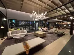 The architectural design of Four Points by Sheraton Bali blends modern minimalism with natural elements. The exterior features sleek geometric lines paired with large floor-to-ceiling windows, creating an open and well-lit visual impression. The understated and stable design harmonizes with the scenic views of the Tamsui River, striking a balance between a vacation retreat and urban living.