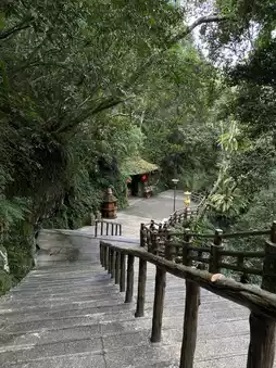 Upon reaching the top, Wulai Yun Hsien Resort was truly beautiful. The atmosphere was amazing! The air was cool and refreshing, making us feel like we were in a Chinese studio movie. But let me tell you, from the cable car to the resort...it was a walk! We were out of breath and sweating. If you had a friend with us, you'd definitely hear their grumbling. But it was a good way to warm up our legs before the walk up.