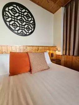The room was decorated in a minimalist, wooden style and was spacious and clean.