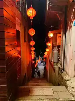 I've heard that Jiufen gets a lot of rain, but it's actually the rain that really brings out its true beauty. The lantern light reflects off the wet cobblestones, doubling the magical level.