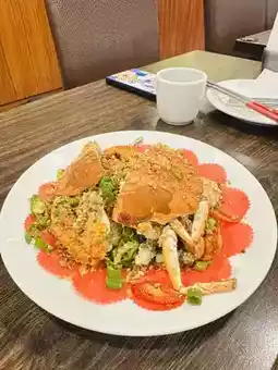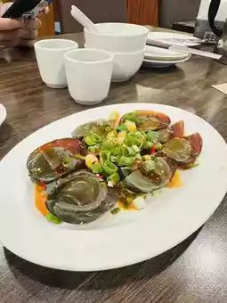 A popular restaurant with a long history, this local favorite boasts more seafood than rice for its incredibly popular clay pot porridge. 🍲 This time, we ate at the Minquan branch and ordered one of their signature dishes, the Hokkaido Raw-Grade Scallop Porridge (Hokkaido Raw-Grade Scallops + Sand Prawns + Shredded Scallops + Pork Meatballs + Nut Sauce + Celery + Ginger + Preserved Vegetables). The toppings are incredibly generous! ✨ The porridge is cooked fresh upon order, requiring a 15-minute wait. The freshly cooked porridge is incredibly fragrant and flavorful, with the soft, glutinous rice grains bursting with umami, creating a truly blissful experience. We also ordered spicy preserved eggs, salted egg bitter melon, and typhoon shelter crab, and complimentary hot tea was provided at the table. The porridge portion can be adjusted to suit the number of people, making it perfect for two.