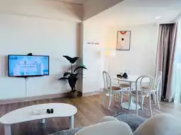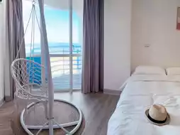 The room was spacious and clean, with a warm, resort-style feel. Large floor-to-ceiling windows let in plenty of sunlight. I stayed in a sea view suite, and waking up to the ocean was incredibly chill! ✨ There was even a swing in the room, so romantic! 💕