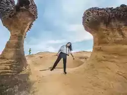 Yehliu Geopark Taiwan is a tourist attraction that exceeded our expectations. My friend planned the places to visit, and I helped plan the itinerary. We took a public bus, which was so much fun. There were lots of curves and the bus driver was super fast, lol. When we arrived, it just opened and we bought our tickets and just walked along the path. It might not have been amazing, but once we got inside, the sea breeze wasn't sticky at all. It was super cool and comfortable. It's an amazing place, maybe because I'd never been abroad before. It was a completely new experience. The walkway was quite long. We met a Korean ajumma who took pictures with us as a group. They were so cute. I loved it so much. It healed my heart like we were traveling to the beach in our country. The staff took very good care of us. They stood around the place. I was very impressed. ✨️✨️🫶 #GetDiscountsWithoutLuck #TaiwanTravel #Taiwan