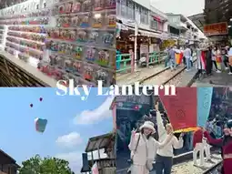 🎈The first popular activity is releasing sky lanterns, a signature feature of this area. Lantern shops line both sides of the tracks, and the lantern launching point is right on the tracks. There are people taking photos and videos.