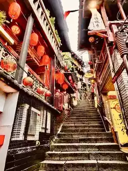 Jiufen Old Street, located in Ruifang District, New Taipei City, was once a major gold mining town in Taiwan. Today, it retains a rich nostalgic charm, attracting countless tourists. The winding stone steps are lined with teahouses, food stalls, and handmade souvenir shops, showcasing the unique charm of a mountain town. The famous A-Mei Tea House and various cafes converted from old houses are perfect spots for tea, sightseeing, and photography. At night, Jiufen's streets are lit with lanterns and shrouded in curling smoke, creating a sense of time travel back in time to the heyday of the gold mining era. Beyond the food and tea culture, you can also take a hike to the mountaintop observation deck, overlooking Keelung Mountain and the Northeast Coast coastline, and enjoying the charming blend of mountain and sea.