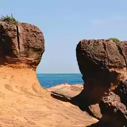 🌊 Queen's Head Rock is a mushroom-shaped rock formation formed by natural erosion, resembling a bust of Queen Elizabeth I. It is formed from two layers of sandstone: the lower layer is softer and more eroded than the upper layer, while the upper layer is harder.