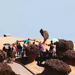🗿 is a famous natural attraction for its uniquely shaped rock formations, formed by wind and sea erosion. The park's iconic symbol is the Queen's Head, along with mushroom-shaped rock formations, turtles, candles, and various other animals.