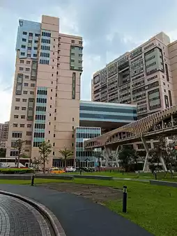 New Taipei Shuanghe Hospital, from the outside, is becoming increasingly impressive. A view near the Xianse Temple, a local religious center, is quite lively.
