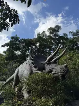 In addition to the lush tropical rainforest and refreshing phytoncides, the Big Roots Forest Park offers an unexpected sight: towering dinosaur models nestled among the trees.
