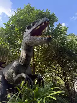 With their jaws wide open and their lifelike poses, they appear to have traveled from the Jurassic era. For children, this is a wondrous adventure playground; for adults, it's a fun interlude, adding a touch of lightheartedness and playfulness to the majestic forest trails.