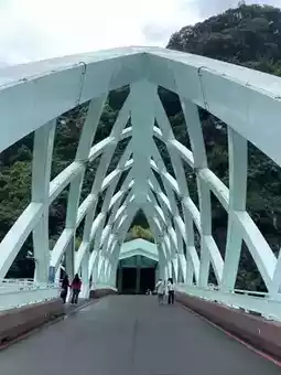 At the entrance, you'll find Wulai Old Street, where you can stop to buy street food and souvenirs. As you walk further in, you'll see a blue net-like bridge, another important landmark. It's quite beautiful!