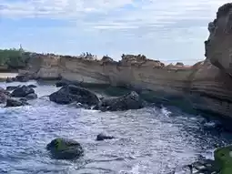Taiwan is not just about temples; it also boasts unique and stunning natural attractions. Today, let me take you out of Taipei City to the New Taipei area. You can take bus number 1815 or 1815A from Taipei City Hall Station, which takes about an hour and a half to reach the Yeliu bus stop. Don't worry about getting lost, as there are plenty of tourists, and tour buses also stop here. From the bus stop, it's just a short walk to the park. The entrance fee is around 120 NTD, and you can book in advance on Trip.com. The park is open from 8:00 AM to 5:00 PM. Yehliu Geopark is a place where the land, formed by rocky mountains, extends into the sea. Over time, erosion by seawater and wind has created uniquely shaped rock formations. The area also has a distinctive ecosystem, which is why it has been preserved as a geopark. We recommend visiting either early in the morning or late in the afternoon before the park closes to capture the best lighting for photos.
