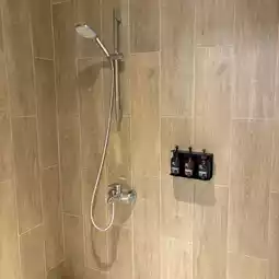 The decor is simple and rustic, dominated by wood tones. Check-in is self-service; you simply pick up your room key from the key box in the lobby and go upstairs. Check-out is also done by hand. The double bed is oversized, with just the right firmness for a comfortable sleep. The separate toilet and shower ensure friends can enjoy the stay without having to worry about waiting for each other.