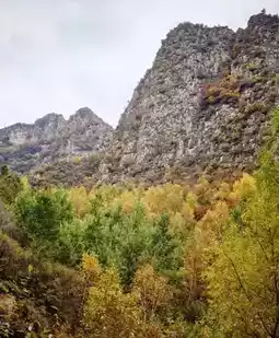 Driving into the valley instantly captivates you! On the thousand-foot black-brown cliffs, the smoke tree glows red like burning fire, the pines and cypresses are deeply green, and when the autumn wind sweeps by, red leaves fall along the cliff like a gradient-colored cloak draping the canyon. The most amazing part is the "One Line Sky" section, where the valley gap is less than 10 meters wide, and sunlight leaks down onto the red leaves. Driving through feels like passing through a time tunnel, and even the traffic lights for passing cars become a unique scenery.