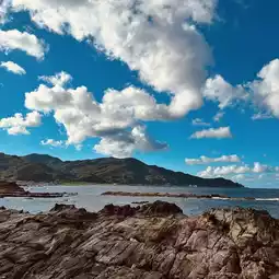 The sky was clear and cloudless, the sea was very blue, and there were eagles soaring in the sky.