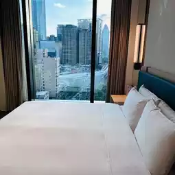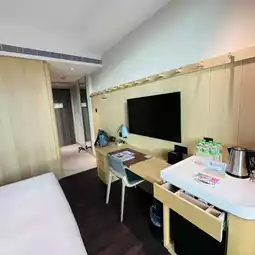 After I have checked in, hotel room don't need to insert room card to on the light, which is very convenient. You don't need to worry about only having 1 room card with you. I didn't expect that there are large floor-to-ceiling windows in front and left of the bed! Great view!