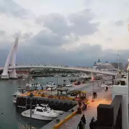 The sunset in Tamsui Fisherman's Wharf was spectacular. I was left speechless while staring at the beautiful sky and ocean. The sun moved slowly and the sky turned pink, I was amazed by the eye popping colours. There were a lot of ships parked at the pier. You may walk on the bridge and enjoy the scenery. There are restaurants and many street foods around. Such a nice place to get away from a fast-paced life. It's advisable to reach there earlier around 5pm and stay until night time. You would be able to see the changing colours of the bridge.