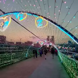 New Taipei City Metropolitan Park is located at Sanchong MRT Station. It is now decorated with lights for Valentine’s Day, which is very romantic. In addition to the Love Bridge, there are also couple locks that look very similar to the Lover's Tower in Myeongdong, South Korea. The entire park covers a large area and is very lively with stalls during holidays.