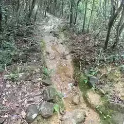 After leaving the Honghualing Trail, we turned into the Lianmakeng Trail at the foot of the main peak of Honghualing, heading towards Lianmakeng. There was a long section of the road that was like a stream with accumulated water, which was really unexpected. I wonder if few people walk this section of road? The road condition is really not good.