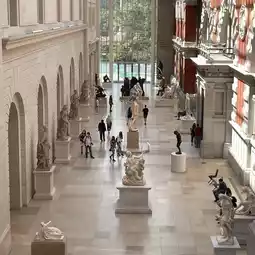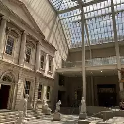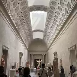 Our journey begins at The Met's American Wing Courtyard. This spot is like a well-kept secret. It's got this old building vibe with an amazing skylight that floods the space with soft, natural light. You're not just walking into a museum; it's like stepping into a hidden oasis where you can soak in art and stunning architecture.