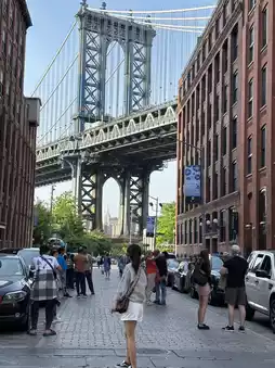 Brooklyn Bridge (Brooklyn Bridge), it takes about 10 minutes to walk from Manhattan to Brooklyn via the bridge, however Brooklyn Bridge is a very hot tourist attraction with stalls set up on both sides of the walkway and a lot of people.