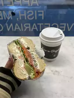 I went because it's a very popular bagel shop in New York! There are many types of cream cheese and toppings, and you can mix and match as you like! I didn't know how to order, so I ordered the signature favorite, a standard flavor with cream cheese and smoked salmon! We shared one between two people, and it was just the right size because it was so voluminous! It was very delicious with plenty of ingredients and the overall balance was good! It's open from 6am, so I think it's perfect for breakfast!