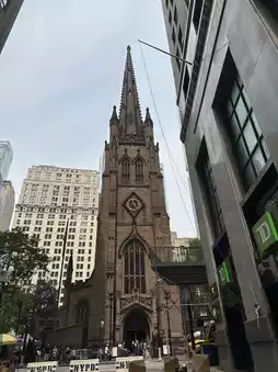 • The Gothic-style Trinity Church stands in striking contrast amidst the skyscrapers.