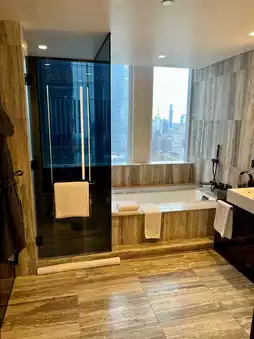 A genuine gem located in a tranquil spot in Hudson Yard, about a 20-25 minute stroll from Time Square. Our stay at Equinox New York was delightful—a true 5-star experience. The staff made sure we were well cared for during our visit. Upon check-in, we were upgraded to a Premier One Bedroom Suite on the 35th floor, featuring a separate lounge and two bathrooms. The remarkable room provided views of the New York skyline and the Hudson River. The minibar was well-stocked, and if you require a fridge, the staff is happy to accommodate with an additional fridge for your room. It’s clear that the room and hotel cater to Equinox gym users, but this doesn't detract from the outstanding experience and service the hotel offers. Ice must be brought to the room as no ice machines are available on individual floors. For our wedding anniversary, the hotel graciously arranged a surprise bottle of champagne, along with a beautifully handwritten card. We definitely plan to stay here again on our next visit to New York.