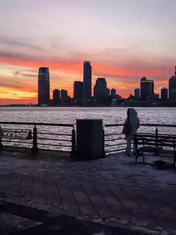 At dusk, the setting sun reflects on the Hudson River, and the skyline outlines the city's steel skeleton. As night falls, neon lights and traffic intertwine to create a poem of prosperity and freedom.