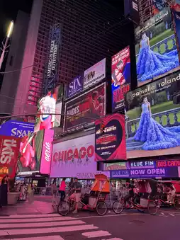 Times Square is a must-see spot when visiting New York. Lined with giant billboards, neon lights, and advertising screens, it's an overwhelming sight both day and night. At night, it's even more dazzling, making it feel like you're in a movie. ✨ It's a city that never sleeps, with lights shining all night long and packed with people!