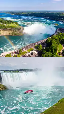 💦Niagara Falls – Niagara Falls, New York: This massive waterfall marks the border between the United States and Canada. The roaring sound of the water hitting the ground and the mist that rises creates a refreshing and breathtaking atmosphere. A boat trip up close to the falls is a must-see highlight.