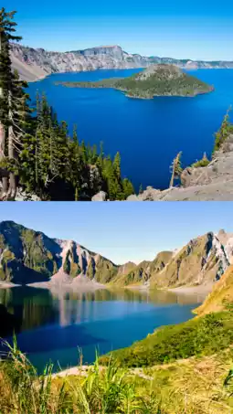 🌊Crater Lake – Crater Lake, Oregon: This deep blue lake, formed from the crater of an extinct volcano, is one of the clearest lakes in the world. The tranquility and sky-high views make this the perfect getaway.