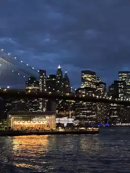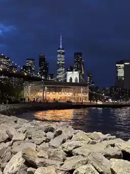 At night, DUMBO transforms into a completely different atmosphere. The illuminated Manhattan Bridge and Brooklyn Bridge, along with the Manhattan skyline glowing across the river, create a romantic and magical scene. It’s a moment where you can feel both the vibrancy of New York and the laid-back charm of Brooklyn.