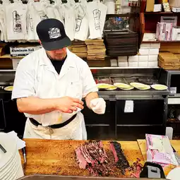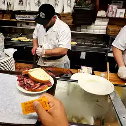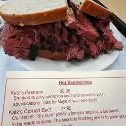 🚂Katz's is located at 205 East Houston Street, New York, NY 10002. It's easily accessible by taking the F train to Second Avenue or the J/M/Z trains to Delancey-Essex, about a five-minute walk away.