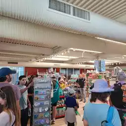 After arriving at the island and getting off the boat, you'll pass by a gift shop and a stall selling ice cream and drinks. Browse around and then admire the Statue of Liberty.