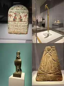 Located at The Met Fifth Avenue in Manhattan, New York City, the exhibition "Divine Egypt" is the museum's first major exhibition dedicated to ancient Egypt in over a decade. Opening on October 12, 2025, and on view until January 19, 2026, the exhibition, curated by Diana Craig Patch, focuses on the iconography of ancient Egyptian deities, exploring how Egyptians brought the gods to life through depictions in tombs, temples, and sanctuaries, and engaged in rituals that connected humans with the spiritual world. The exhibition explores the overlapping forms and characteristics of over 1,500 deities throughout Egypt's long history, identifying deities and their roles through visual cues such as clothing, gestures, and symbols. It also provides insights into the king's direct interactions within the temple and the people's connections through private offerings, offering meaning to the uncertainty of life and the permanence of death. The exhibition features nearly 250 artworks and objects, many on loan from the Museum of Fine Arts, Boston, the Louvre, Paris, and the Ny Carlsberg Glyptotek, Copenhagen. The exhibition includes depictions of deities such as the hawk-headed Horus, the lion-headed Sakhmet, and the Shroud of Osiris, highlighting how imagery evolved and reflected the role of deities in everyday life.