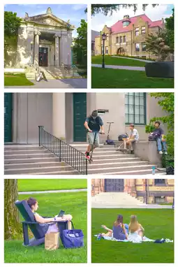 I like the vitality of the campus, the skateboarding boys, and the students reading on the lawn.