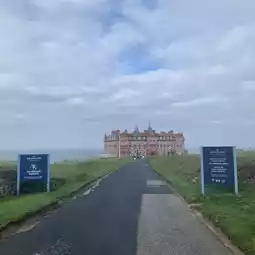 My favorite city in England is Newquay! It's a small city where surfing and golf coexist, and it's a really beautiful city surrounded by the sea! Here, on a hill called Fistral Beach, there's a really pretty hotel that looks like it came out of Grand Budapest!