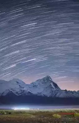 From a distance, it resembles a massive pyramid towering between heaven and earth. The summit, perpetually covered in snow and ice, glistens with a sacred light under the sun. The most fascinating feature is the vertical ice groove descending from the peak, intersecting with horizontal rock layers to form the Buddhist swastika symbol, as if it were a divine code etched upon the mountain's summit.