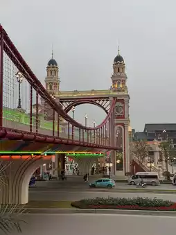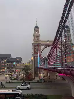 and surprisingly, there was a Korean town there. The buildings were decorated with Korean elements, and when we visited, it had just opened, so it was really clean.