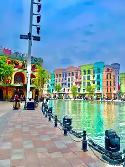• The 2.6km waterside promenade and pond recreate the Venetian and Mediterranean arcade streets.